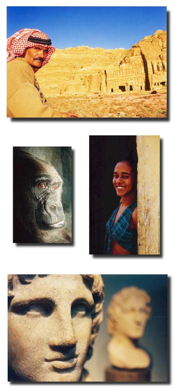 Photos at left, clockwise from top: Mohammud at Petra; Havana woman; Alexander the Great, British Musuem; Gorilla | ||||||||||||||||